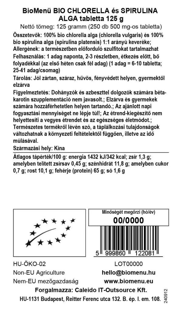 100% Bio Chlorella-Alge (chlorella vulgaris) und 100% Bio Spirulina-Alge (spirulina platensis) 1:1 Mischung; Kapselhülle: Hydroxypropylmethylcellulose; Allergene: kann natürlich vorkommende Sulfite enthalten