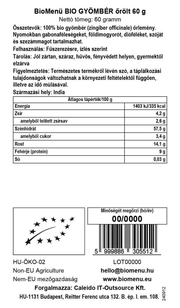 100% Bio Ingwer (zingiber officinale) gemahlen. Kann Spuren von Getreide, Erdnüssen, Nüssen, und Sesamkernen enthalten.