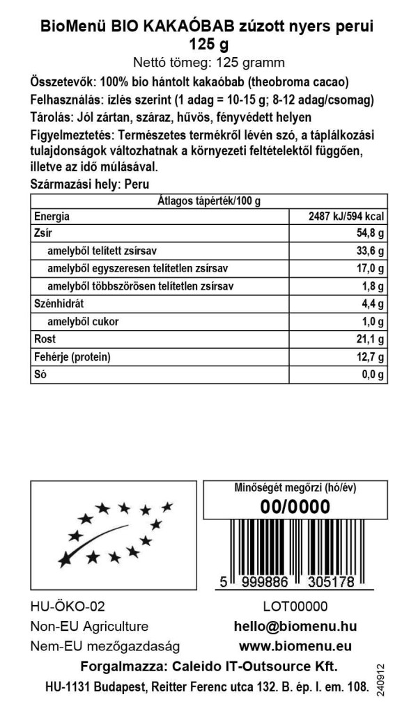 Bio-Kakaobohnen (Peru) sind 100% natürlich und enthalten keine Zusätze wie Zucker, Säuren, Farbstoffe, Konservierungsstoffe usw.