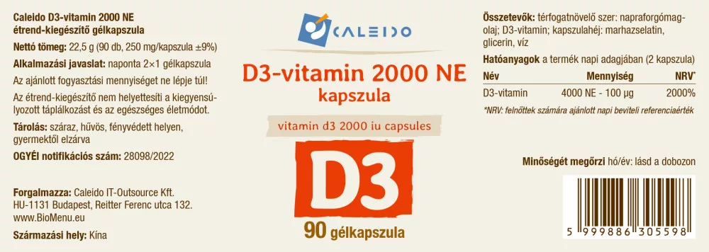 | Vitamin D3 | 4000 NE - 100 µg | 2000.00 |